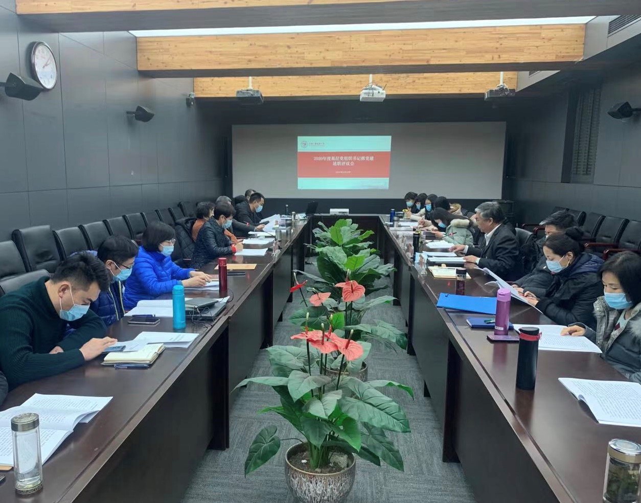 1月12日,按照市委組織部、市委教育工委工作要求,我校召開2020年度基層黨組織書記抓黨建述職評議會。黨委書記周志,黨委副書記王剛清,紀委書記李永強,各黨總支、直屬黨支部書記和黨員代表共23人參加了會議。會議由黨委書記周志主持。