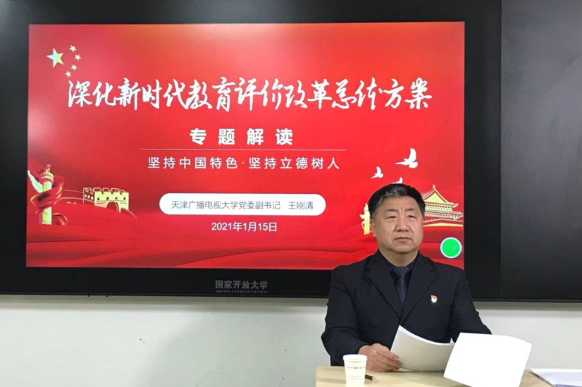 王剛清副書記從教育評價改革的思想來源、《方案》的邏輯框架和基本內容三個方面講解,結合學校辦學特色和未來開放大學建設方向,教育引導干部教師準確把握“為什么改”“改什么”“怎么改”三個關鍵問題,進一步明確改革的重點領域、關鍵環節和主攻方向。他要求廣大教職工認真履職盡責,落實教書育人使命,推進學分銀行制度建設,推動構建服務全民終身學習的教育體系,努力促進學習型社會建設發展,為深化新時代教育改革評價貢獻天津開大的力量。