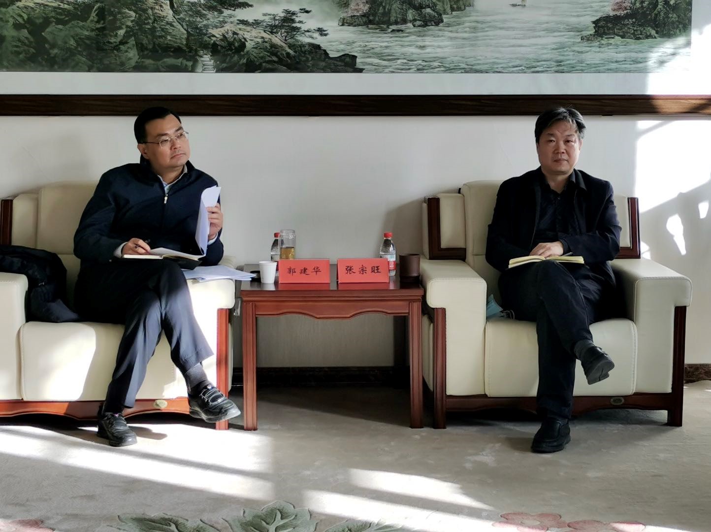 黨委副書記、校長張宗旺介紹了學校的總體發展情況。副校長劉金明介紹了學校在推進產教融合方面工作的新進展,發展規劃與科研處、資源研發中心、跨境電商學院等部門負責人參加座談并匯報了學校創新項目和特色學院建設情況。