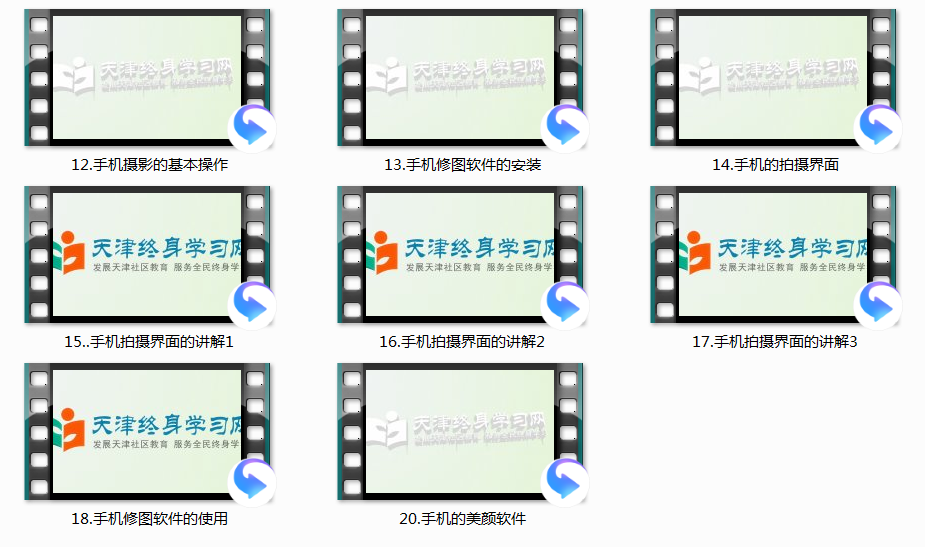 利用天津終身學習網發布“跟我一起玩轉手機”、“智能手機操作系統”等智能手機系列視頻課程,編輯出版“智慧科技生活”、“老年人i攝影”、“老年人i視頻”系列智能手機應用教材,提供豐富的學習資源,為老年人線上線下、教學自學智能手機提供有力的支持。