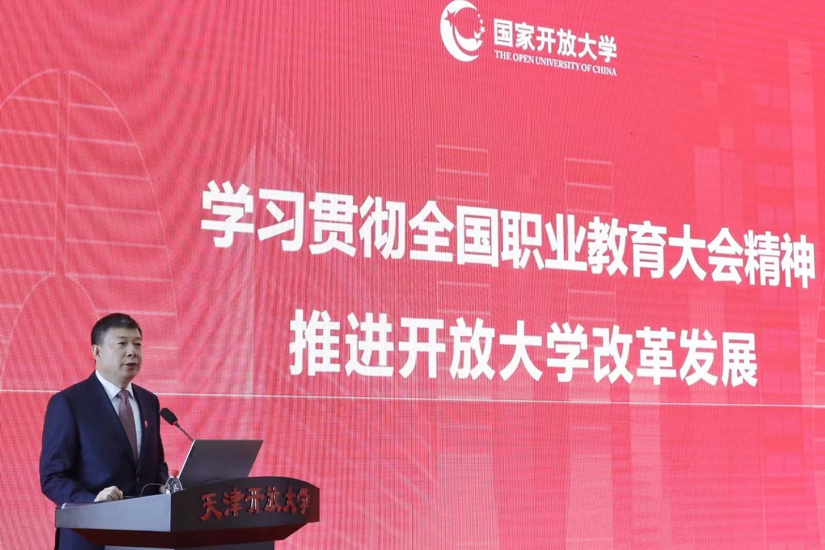 市政府副秘書長王璟宣讀《天津市人民政府關于同意天津廣播電視大學更名為天津開放大學的批復》
