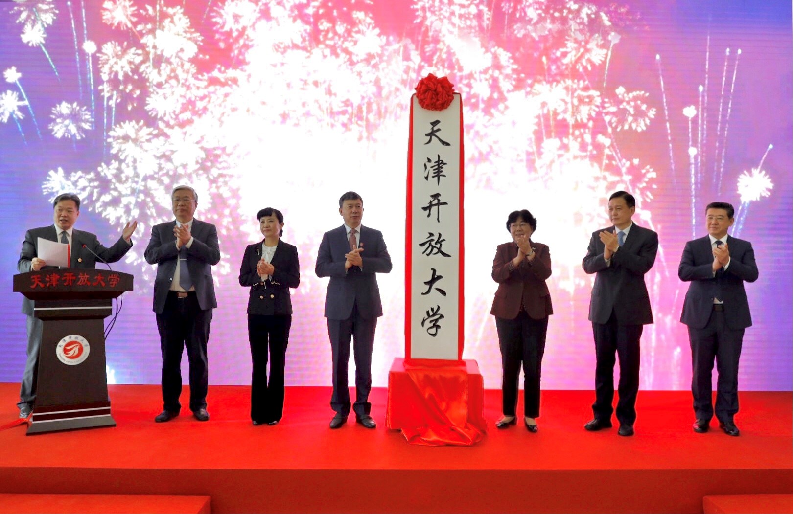 天津市人民政府副市長、市政協副主席曹小紅,國家開放大學黨委書記、校長荊德剛共同為天津開放大學揭牌