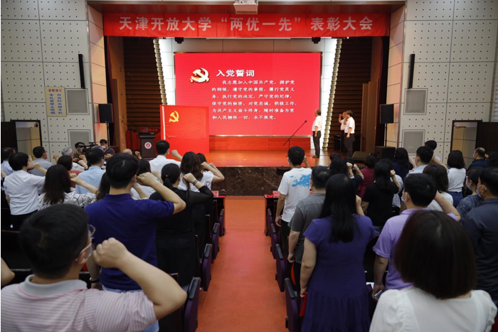 上午9時30分,表彰大會正式開始。全體起立,奏唱國歌。王剛清副書記宣讀校黨委關于表彰“兩優一先”的決定,通報受到上級表彰的人員情況。校領導為“光榮在黨50年”的老黨員代表頒發紀念章,向受表彰的教育系統和學校優秀共產黨員、優秀黨務工作者及先進基層黨組織、駐村幫扶組、“創最佳黨日”活動獲獎黨支部代表等頒獎。