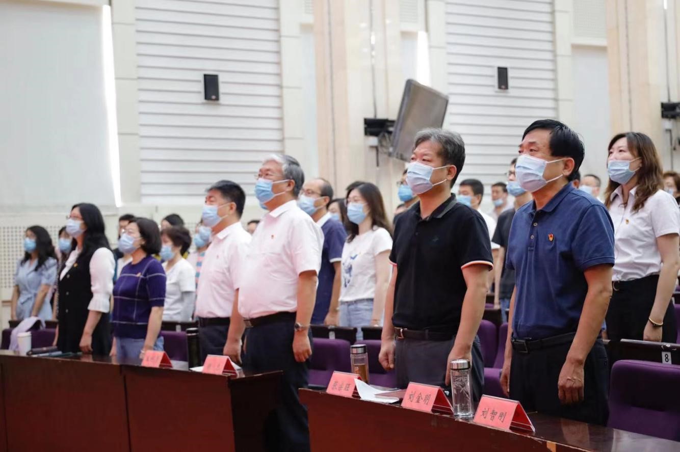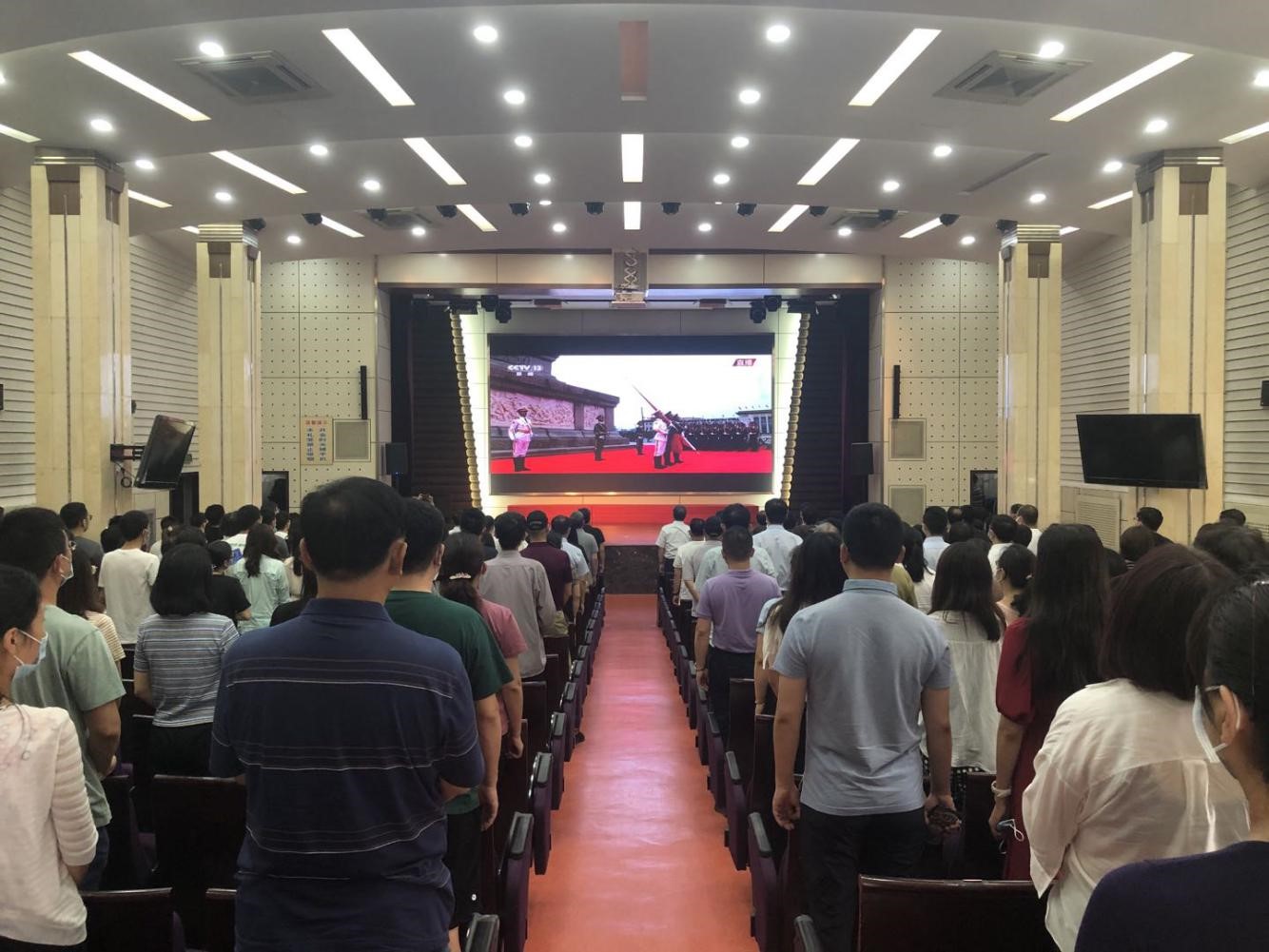 7月1日上午,我校在迎水道校區大禮堂組織全體教職工集體收看慶祝中國共產黨成立100周年大會實況直播。黨委書記周志,黨委副書記、校長張宗旺,黨委副書記王剛清,副校長劉金明,黨委委員、副校長劉智剛與教職工一起觀看。