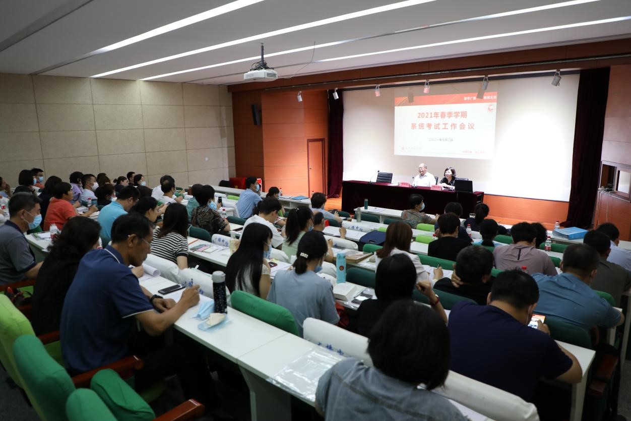 7月2日上午,2021年春季學期天津分部系統考試工作會議在迎水道校區多功能報告廳召開。系統各辦學單位和校內各辦學部門負責人、各考點主考和考試工作人員共80余人參加會議。校黨委委員、副校長劉智剛出席會議并講話,教務處處長楊冬梅主持會議。