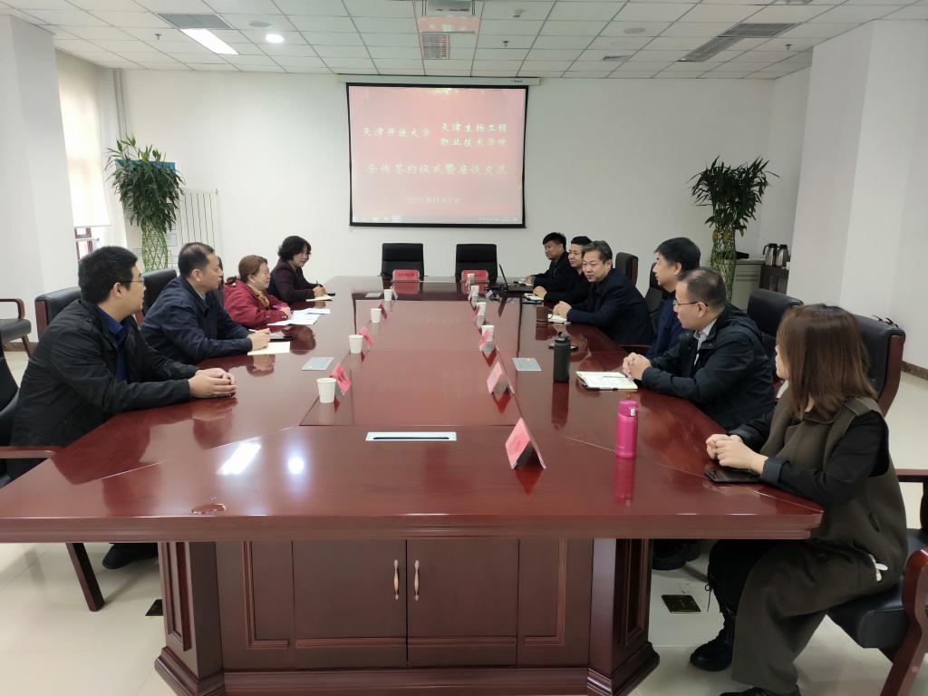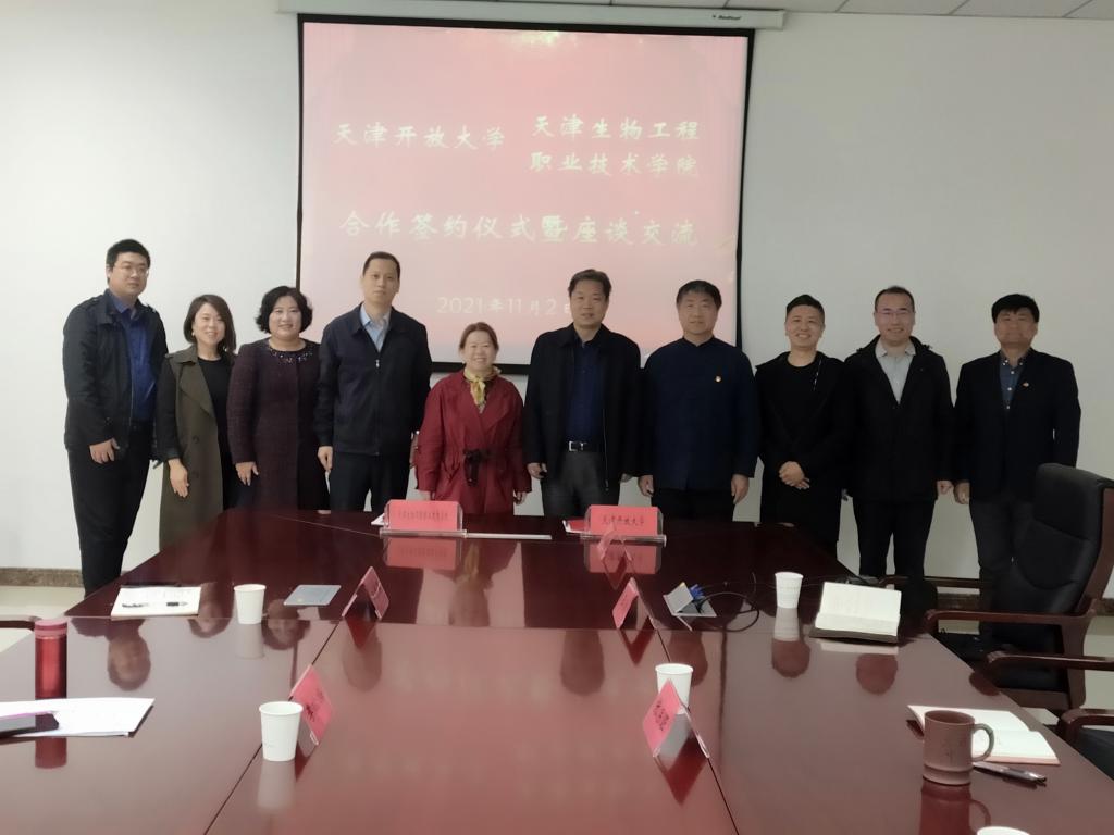 李榆梅院長表示,天津開放大學辦學理念新、底蘊厚、特色優勢突出,對兩校深度合作表示期待。她介紹了天津生物工程職業技術學院的辦學情況,認為雙方的合作為學院高職畢業生提供學歷素質提升通道,對培養高素質、高技能的行業人才具有重要意義。她希望充分利用開放大學資源平臺,促進雙方在課程資源、實訓實習等多領域的交流合作與開放共享,共同為本市經濟社會發展服務。