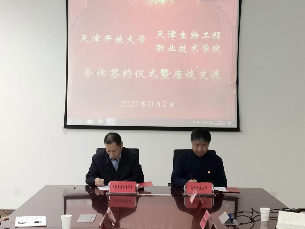 11月2日,我校與天津生物工程職業技術學院在海教園校區簽署合作協議并座談交流。校黨委副書記、校長張宗旺,校黨委副書記王剛清,天津生物工程職業技術學院院長李榆梅,副院長王輝,及雙方相關負責同志參加。王剛清副書記主持簽約儀式。