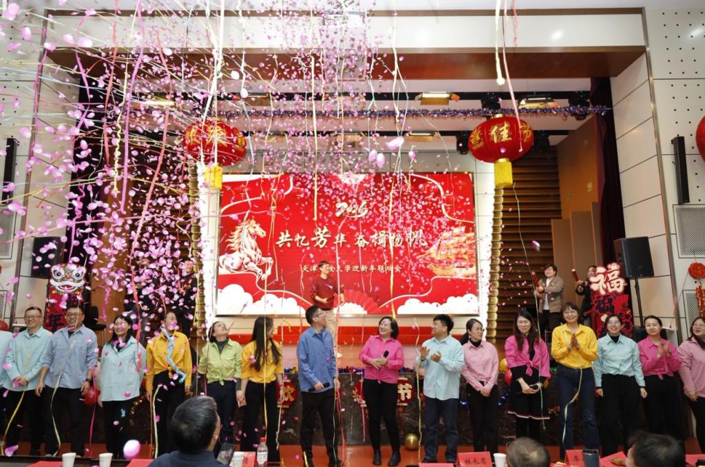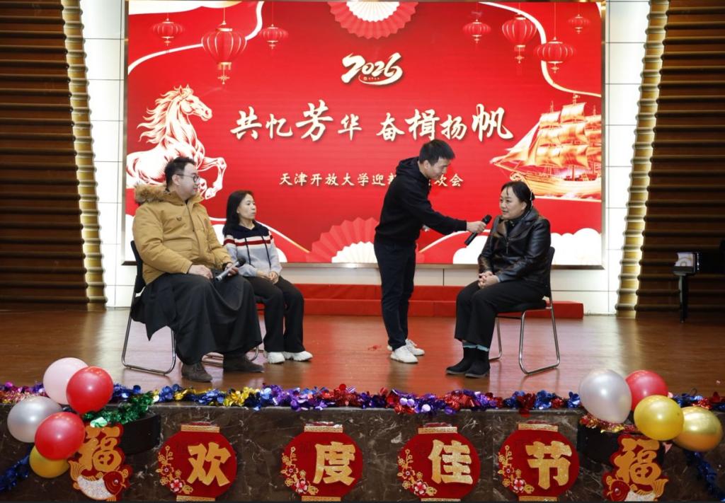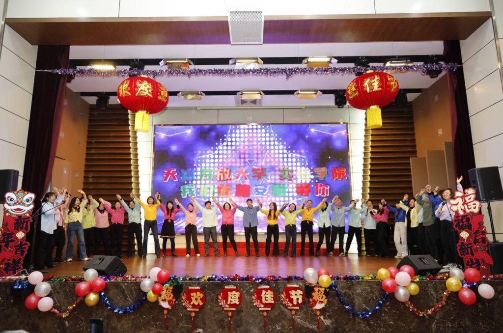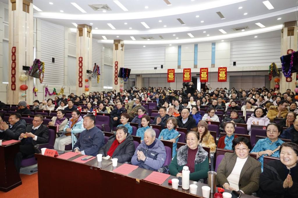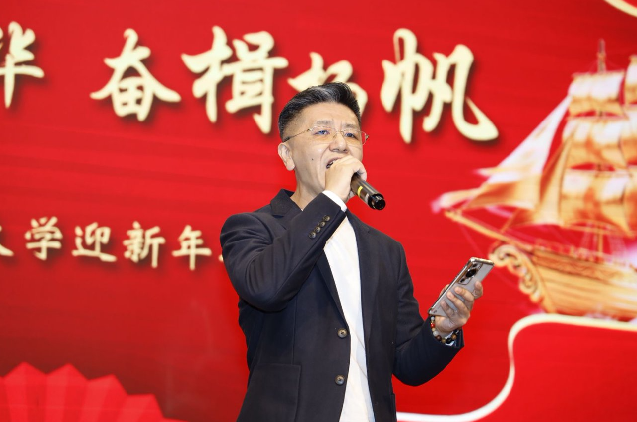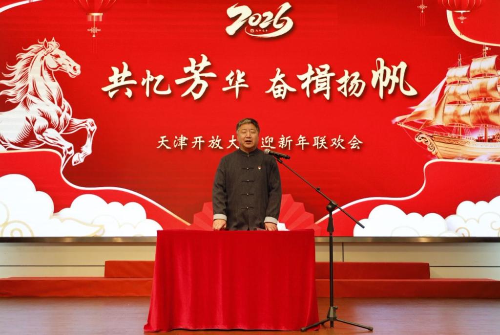 黨委書記、校長杜長有致詞,為全體教職工送上新年祝福。他指出,2025年,是學?!笆奈濉币巹澥展俸汀笆逦濉币巹澲\劃的關鍵一年,我們堅持黨建引領,筑牢發展根基;堅持立德樹人,培育時代新人;堅持深耕民生,服務終身學習;堅持產教融合,賦能發展大局;堅持以人為本,厚植育人沃土,如期實現“三基地一平臺”建設目標,在建設天津特色、國內一流開放大學的道路上邁出了堅實有力的新步伐。這些成績的取得離不開每位開大人的心血與汗水。新的一年,我們將完成校區搬遷工作,形成學校“一主三輔”辦學新格局。全校上下要始終堅持以習近平新時代中國特色社會主義思想為指導,錨定“六個天開”總目標,勇擔使命、團結一心,奮力譜寫學校高質量發展新篇章。