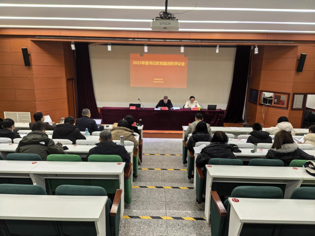 會議傳達了教育系統2025年度所屬單位黨委書記抓基層黨建工作述職評議會會議精神,總結了學校2025年度抓基層黨建工作情況。11位基層黨組織書記進行了現場述職。杜長有對每位書記的述職逐一進行點評,指出存在不足,提出整改意見。與會人員結合現場述職和書面材料,通過民主測評的方式,對各總支、直屬黨支部書記抓黨建工作履職情況進行了客觀公正的評議。