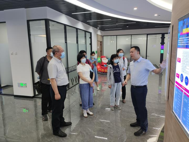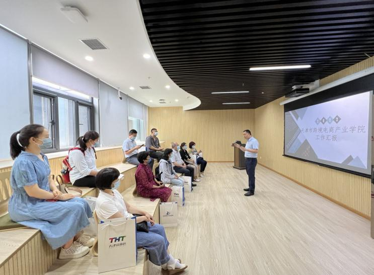 活動首站,全體人員深入學??缇畴娚坍a業園,實地了解學校推動綜合改革、特色學院建設,助力產業發展,實現人才培養與經濟社會發展無縫對接的舉措與效果。在參觀園區展示廳、實訓教室、產品展覽室、營銷直播間等場景后,跨境電商學院院長平凡介紹了產業園建設、促進大學生就業創業等方面工作。