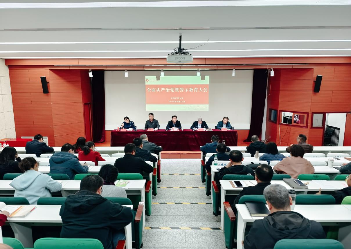近日,學校召開2025年全面從嚴治黨暨警示教育大會,傳達學習中央和市委有關文件和會議精神,部署安排2025年重點工作任務。校領導班子成員,全體中層干部,基層黨支部書記參加會議。會議由黨委副書記、校長杜長有主持。