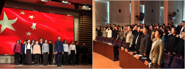 演出最后一幕,在鮮艷的五星紅旗的映襯下,演員齊聲誦讀習近平總書記為深切緬懷焦裕祿同志所創作的《念奴嬌?追思焦裕祿》,臺下觀眾全體起立,與演員一起宣誓學紀、知紀、明紀、守紀,形成強烈情感共鳴。