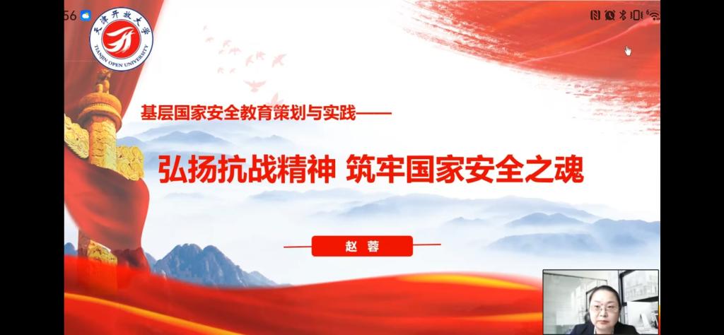 4月11日,我校通過云教室直播課《基層國家安全教育策劃與實施》,向校內及系統辦學單位開放教育成人在籍生開展題為“弘揚抗戰精神 筑牢國家安全之魂”的國家安全教育專題直播課。從“愛國情懷凝聚國家安全的精神長城、民族氣節鑄就文化安全的鋼鐵防線、英雄氣概鍛造科技安全的利劍、必勝信念照亮復興征程的燈塔”四個方面進行宣講,傳播安全知識。
