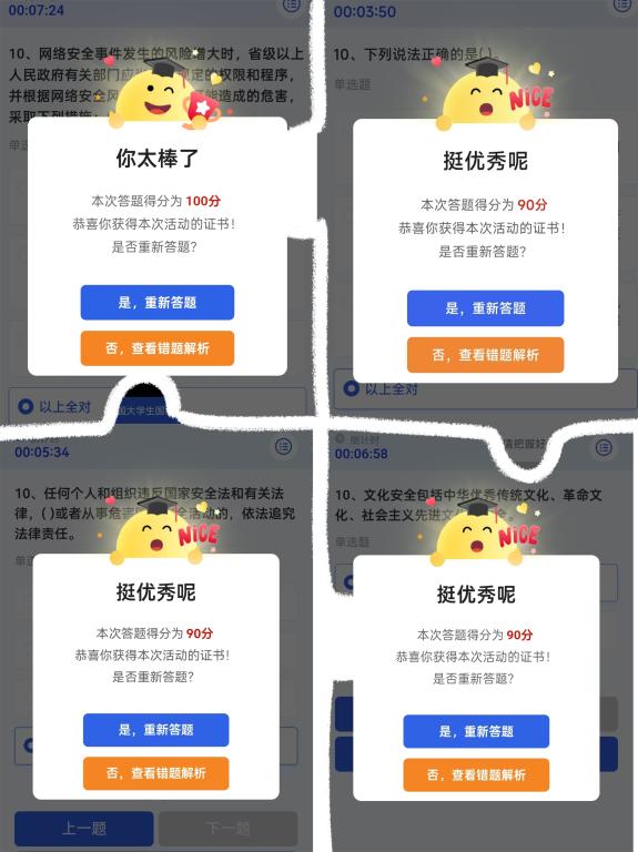 4月10日至4月19日,我校組織師生通過中國大學生在線網站和微信公眾號參與答題,普及國家安全知識,提高維護國家安全意識。4月14日—15日,黨委學生工作部牽頭組織學生收看了“千萬高校學生同上一堂國家安全教育課”主題公開課、“國開大講堂·國家安全教育公開課”,并讓學子們暢談觀后感與體會。大家積極踴躍發來了參與活動的照片和個人體會。