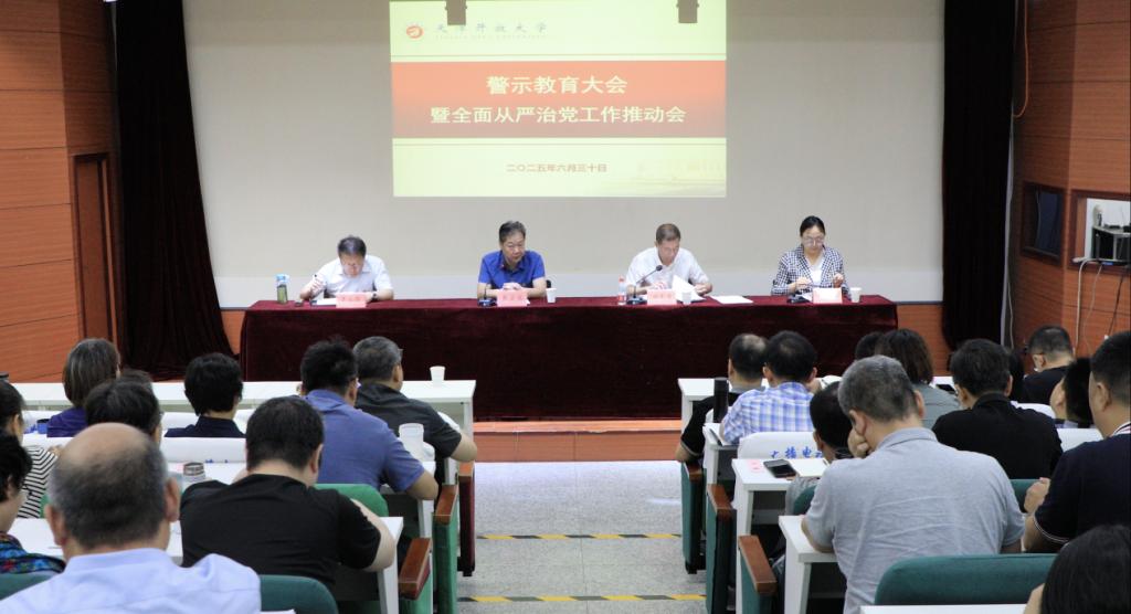 6月30日,學校召開警示教育大會暨全面從嚴治黨工作推動會,傳達學習中央和市委有關文件和會議精神,開展專題警示教育,部署安排2025年下半年全面從嚴治黨重點工作任務。校領導班子成員,科級以上干部,基層黨支部紀檢委員、紀檢聯絡員參加會議。