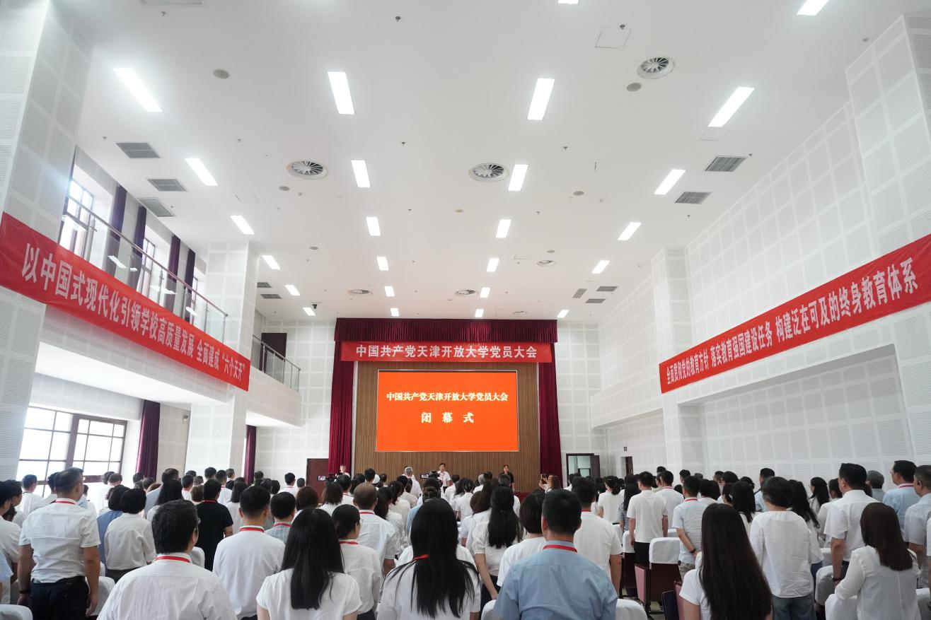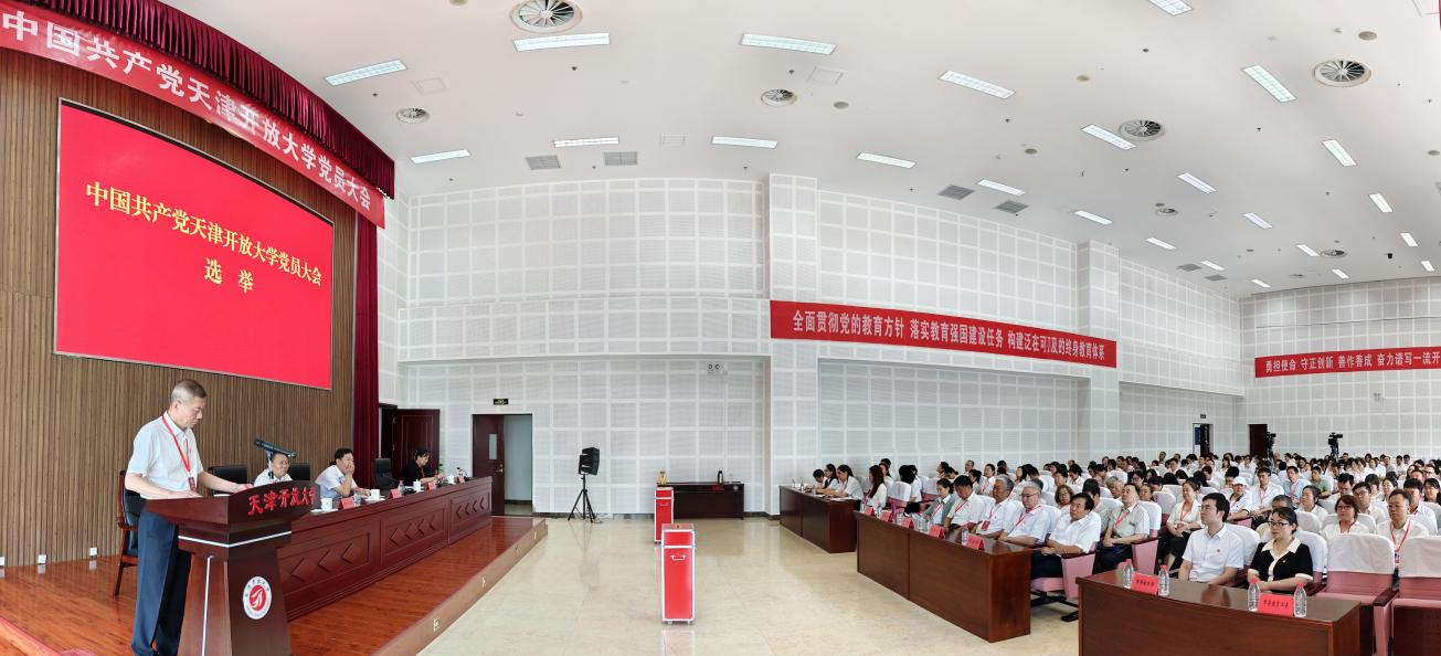 2025年7月16日,中國共產黨天津開放大學黨員大會在海教園校區召開。這次黨員大會是在學校全力推進綜合改革和高質量發展的關鍵時期,召開的一次十分重要的會議。大會的主題是:以習近平新時代中國特色社會主義思想為指導,以中國式現代化引領事業高質量發展,全面貫徹黨的教育方針,深入落實立德樹人根本任務,勇擔使命、守正創新、善作善成,奮力譜寫一流開放大學建設新篇章!