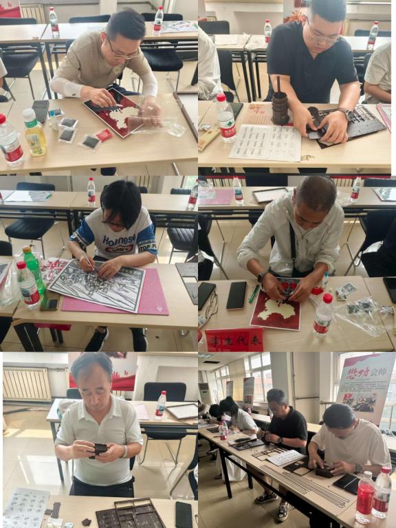 隨后,活動進入沉浸式實踐環節。同學們與黨員們分成小組,前往不同體驗區。在模型拼裝區,同學們親手搭建“遵義會議會址”“延安寶塔”“延安窯洞”“瀘定橋”等微縮場景,通過一磚一木的搭建,感悟歷史的厚重。紅色剪紙創作區則吸引了眾多心靈手巧的同學,他們用剪刀和紅紙,剪刻出長征路上的標志性事件,讓紅色記憶躍然紙上。此外,同學們還參觀了會場設置的長征事跡展覽版,深入了解歷史細節,并嘗試穿上草鞋,短暫感受紅軍戰士跋涉的艱辛。