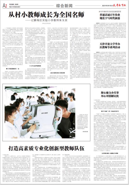 天津教育報于9月15日報道了我校召開慶祝教師節大會,相關報道如下: