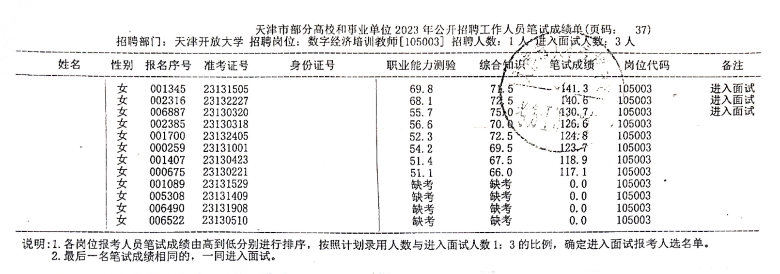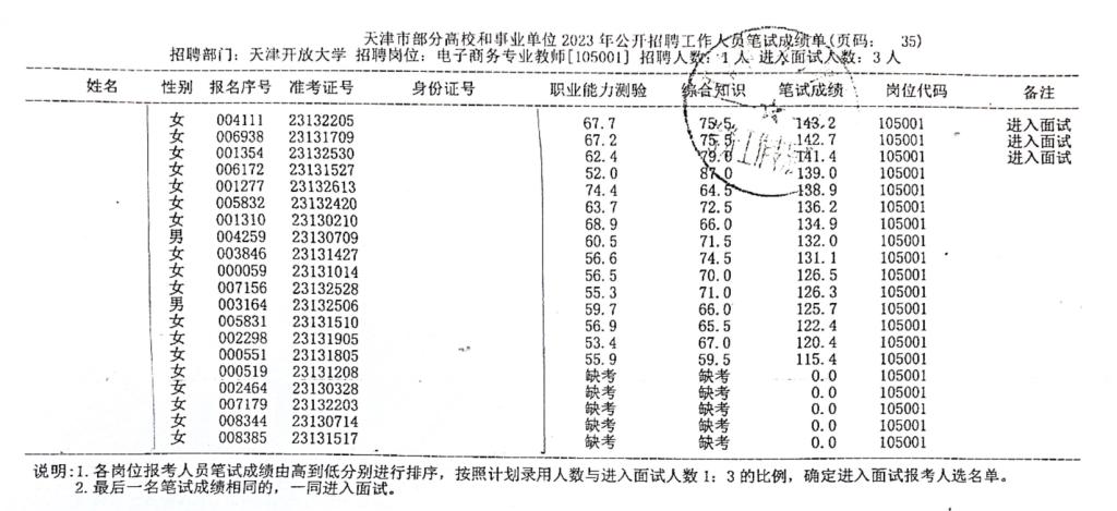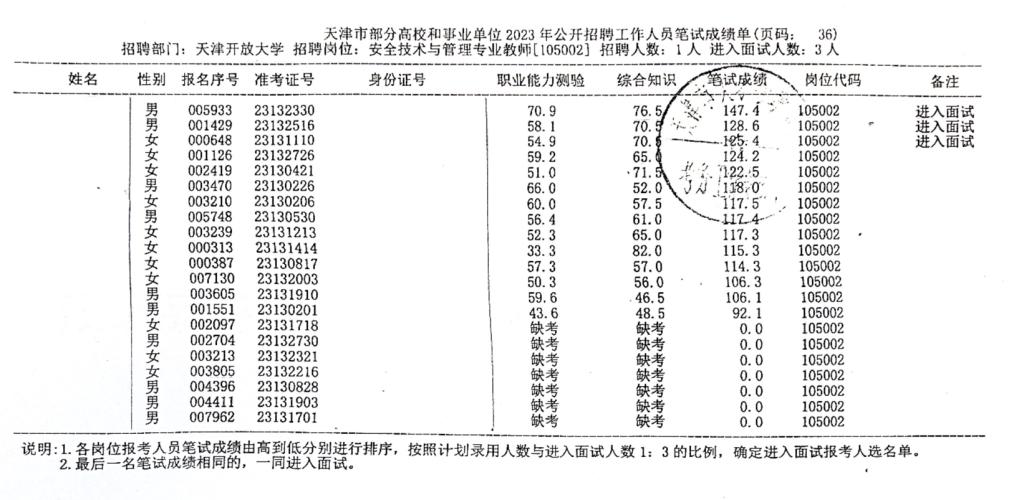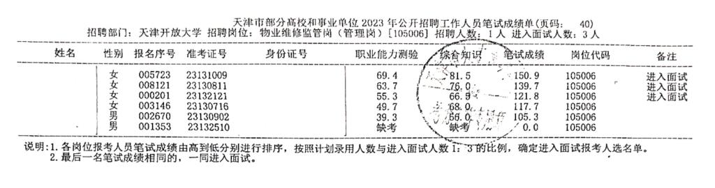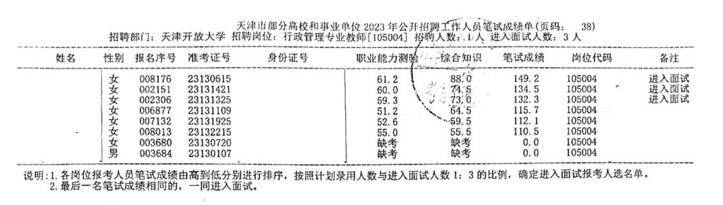 按照《天津開放大學2023年公開招聘方案》的要求,現將我校2023年公開招聘工作人員筆試成績公布如下: