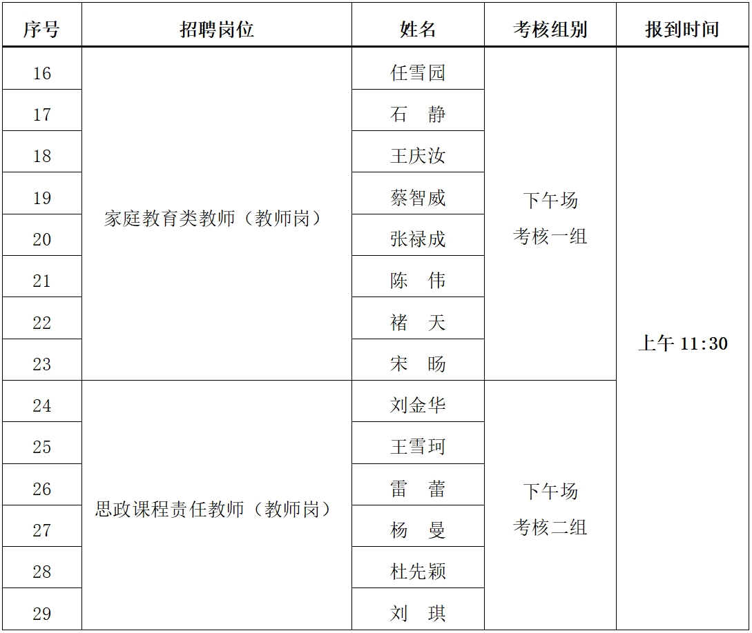 1、參加上午場考核的應聘人員于8:00,參加下午場考核的應聘人員于11:30前持二代居民身份證、《天津開放大學公開招聘工作人員報名表》(誠信聲明欄本人簽字)到1號樓三層301教室(候考室)報到,未攜帶證件不得參加考核。應聘人員經抽簽后,按抽簽順序依次參加考核。