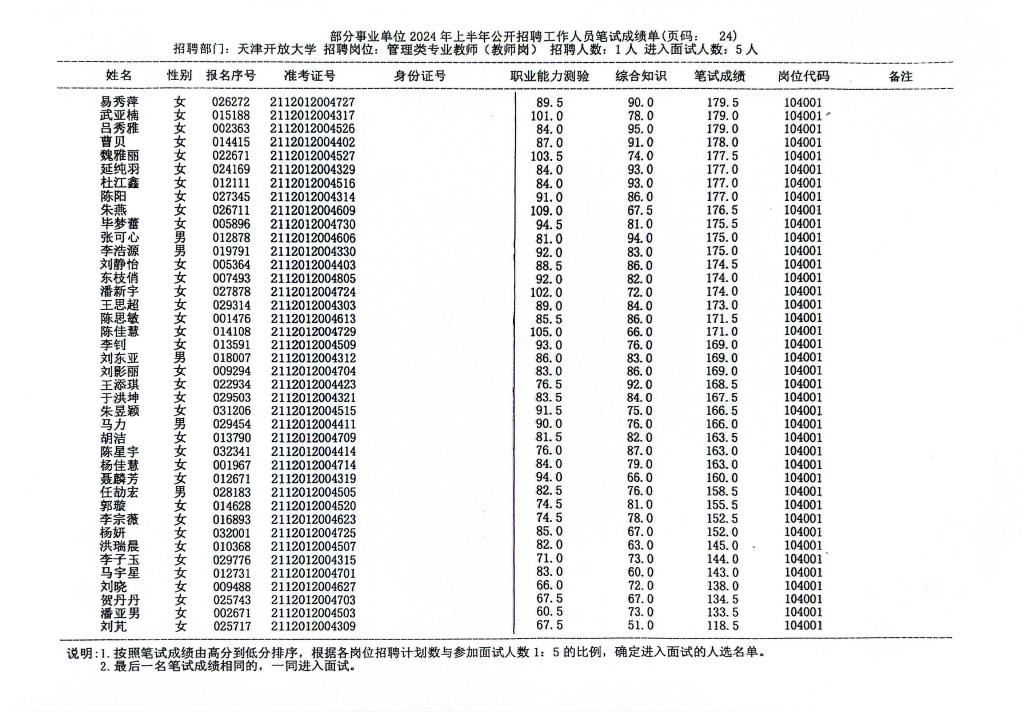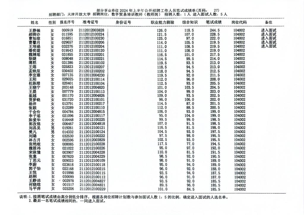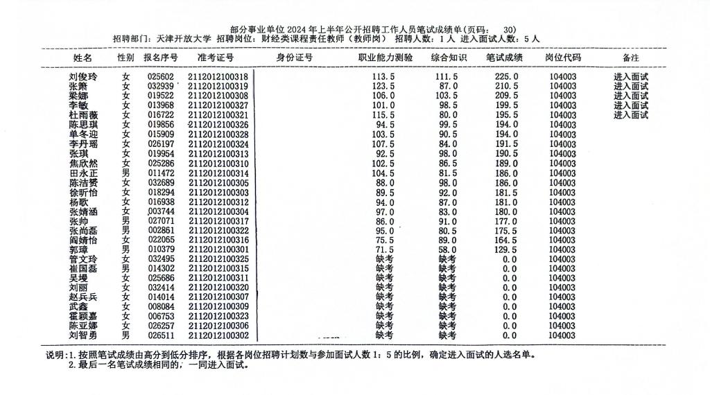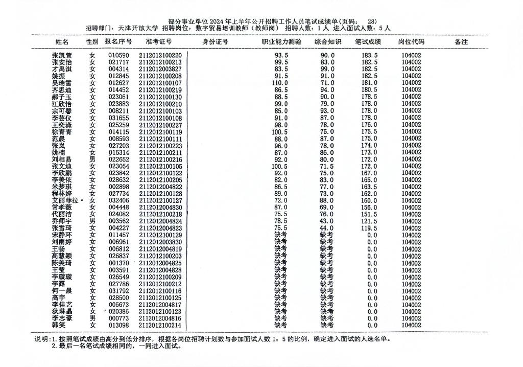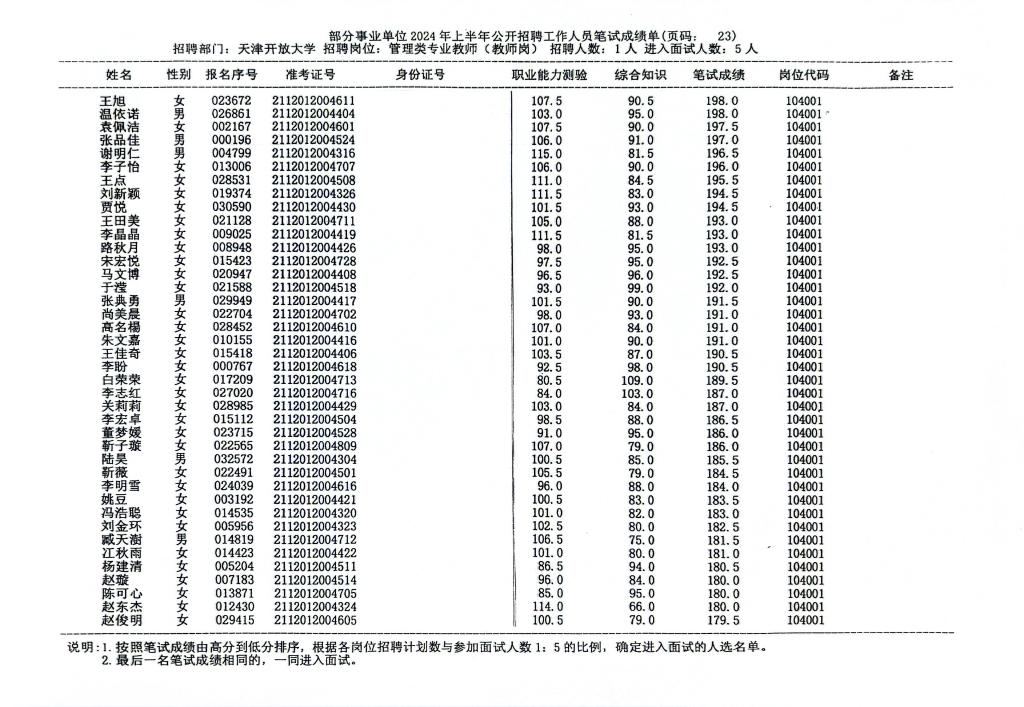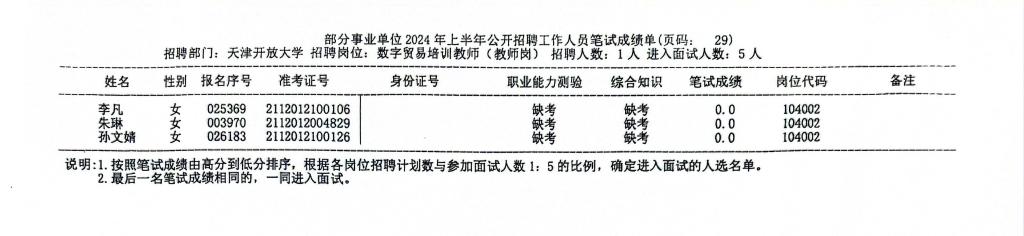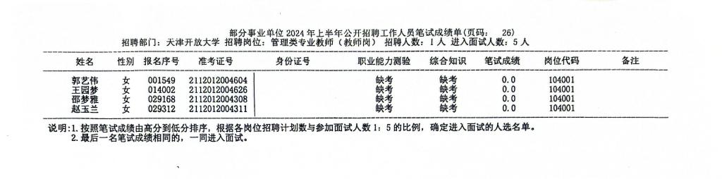 按照《天津開放大學2024年第二批公開招聘方案》的要求,現將我校2024年第二批公開招聘工作人員筆試成績公布如下: