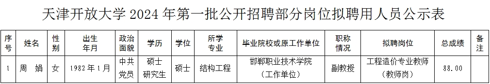 天津開放大學第一批公開招聘(副高或博士崗位)部分崗位擬聘用人員公示
