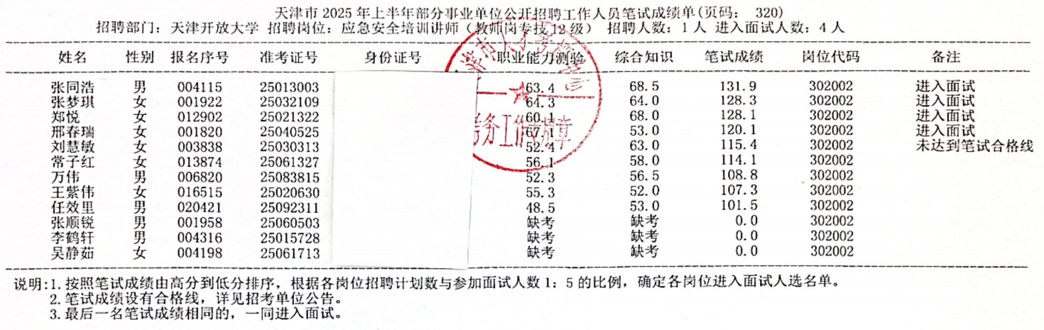 按照《天津開放大學2025年第二批公開招聘方案》的要求,現將我校2025年第二批公開招聘工作人員筆試成績公布如下: