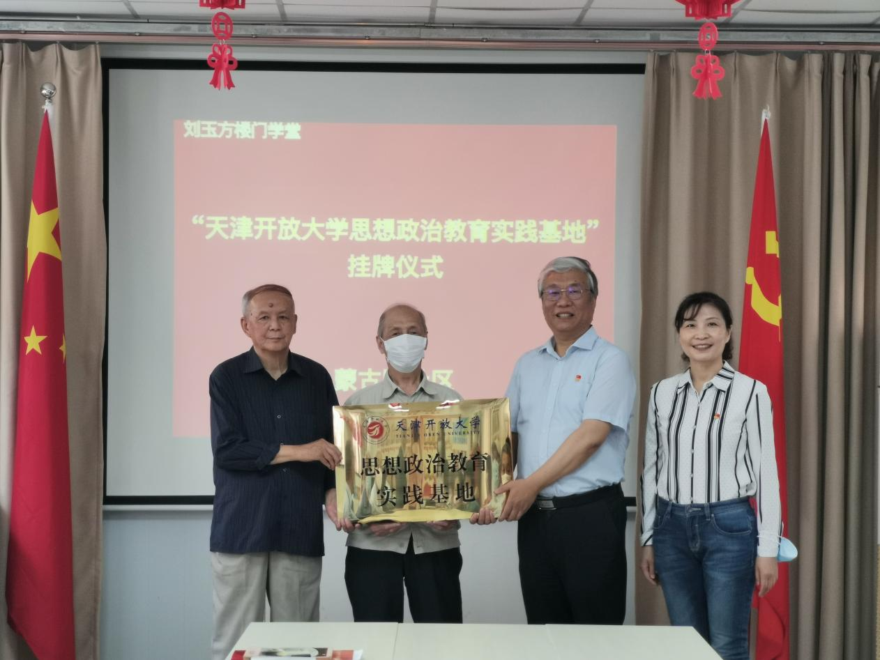 5月26日上午,我校在和平區蒙古路社區舉行“天津開放大學思想政治教育實踐基地”授牌儀式。校黨委書記周志,蒙古路社區黨群服務中心書記、主任黑焱出席。蒙古路社區學院負責人、“劉玉芳樓門學堂”理論學習組成員,我校黨委組織部、黨委宣傳部、黨校辦、老年大學負責人,黨校辦黨支部和老年大學黨支部黨員參加。