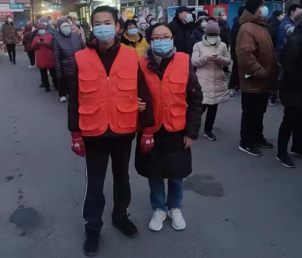 1月15日,民進會員夏方毅老師帶著12歲的兒子一起參加了華泰園社區志愿服務,負責上門通知社區居民核酸檢測,協助社區人員維持秩序、核對人數等工作。她說道:“這次帶孩子一起參加志愿服務非常難得,即為社區服務貢獻了力量,也讓孩子在志愿服務中受到了教育,體會到了志愿者的辛苦,向他們致敬!”