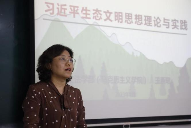 馬克思主義學院王燕珺教授圍繞學習貫徹黨的二十大精神,以《習近平生態文明思想理論與實踐》為題,從習近平生態文明思想的形成發展、習近平生態文明思想的理論內涵及特征體現等方面進行了深入解讀。
