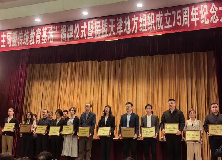 徐子鈞(右四)代表民盟天津開放大學支部領獎