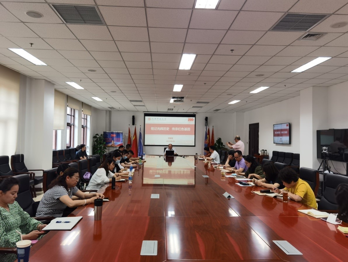 6月16日上午,校黨委委員、副校長劉智剛在海河園校區以“銘記光輝歷史 傳承紅色基因”為主題講授了黨史學習教育專題黨課。教務處、學歷教育發展中心、社區教育與培訓中心、老年大學、社會教育學部等部門黨員聽取了黨課。