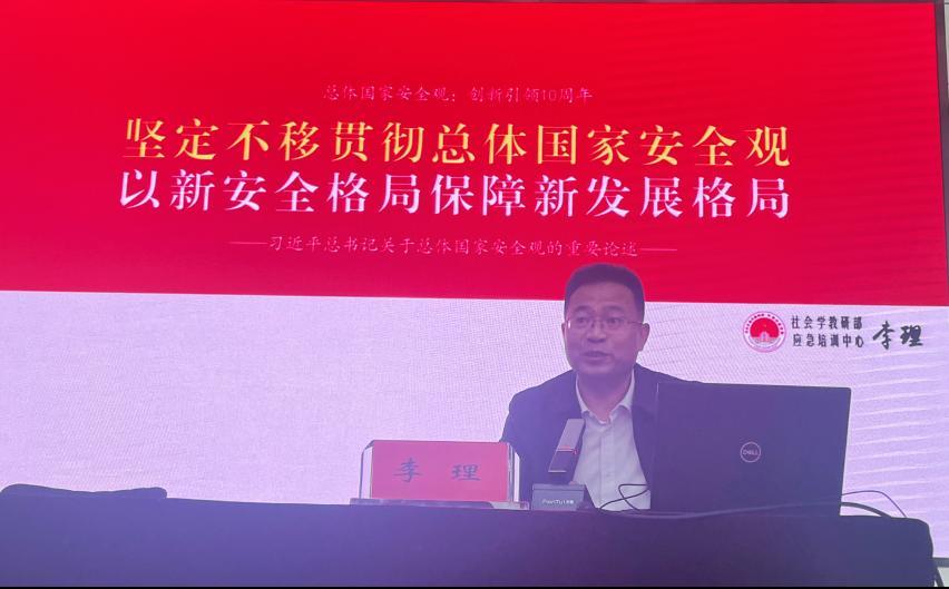 李理教授從“深刻把握歷史方位,清醒認識國家安全形勢任務”“牢牢把握新安全理念,堅決貫徹總體國家安全觀”“全面把握構建新安全格局的內涵特征,科學謀劃構建新安全格局”三個方面深入淺出地對總體國家安全觀、新時代安全形勢、安全格局進行了闡釋,政治站位高,理論基礎扎實,實踐指導性強,加深了大家對總體國家安全觀的理解,提升了國家安全意識,對推動學校國家安全宣傳教育活動深入開展具有指導作用。