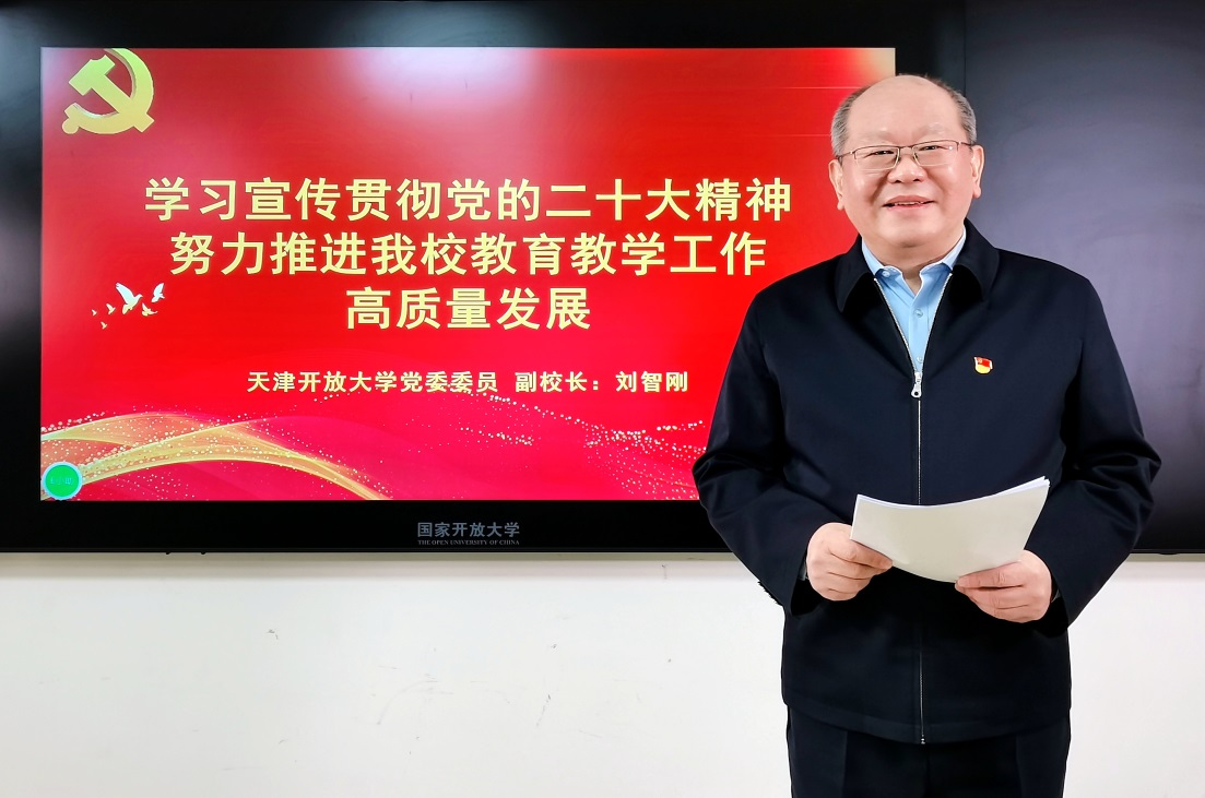 12月9日,校黨委委員、副校長劉智剛以“學習宣傳貫徹黨的二十大精神,努力推進我校教育教學工作高質量發展”為主題講授云直播黨課。教務處、社區教育中心、老年大學、社會教育學部等部門負責同志現場聆聽講座,以上部門全體黨員、教職工以及社會教育學部部分學生通過線上方式參加了學習。
