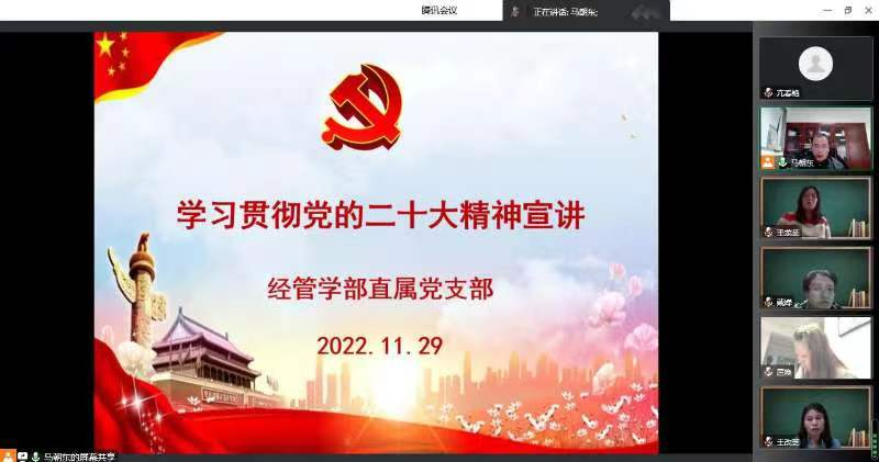 連日來,按照校黨委統一安排,我校各基層黨組織書記克服疫情影響,以線上或線下方式,廣泛深入開展為黨員和教職工宣講黨的二十大精神活動。各黨支部書記緊緊圍繞深刻認識學習宣傳貫徹黨的二十大精神的重大意義,堅持“七個聚焦”、做到“九個深刻領會”等方面,對黨的二十大精神進行解讀闡釋,并結合各黨支部具體工作交流研討,營造了濃厚的學習氛圍和良好的校園環境,興起了學習宣傳貫徹黨的二十大精神熱潮,確保黨的二十大精神入腦入心、落地見效。