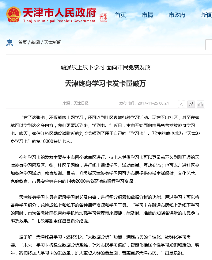 充分發揮天津市社區教育指導中心職能。2017年,市教委批準我校成立天津市社區教育指導中心,建立與完善相應的工作機制,大力提升社區教育實驗區、示范區工作水平,推動各類學習型組織和社區學習中心建設。在全市各區建立社區教育指導機構,195個街鄉鎮建立社區學校,2148個社區建立學習中心,初步構建了覆蓋全市城鄉的五級社區教育服務體系。中心自成立以來共組織全市社區教育研討會、交流會20余次,深入社區服務100余次,累計服務5000余人次。建設天津終身學習網和移動端,目前在冊用戶20.1萬人,移動媒體總受眾達100萬人次。