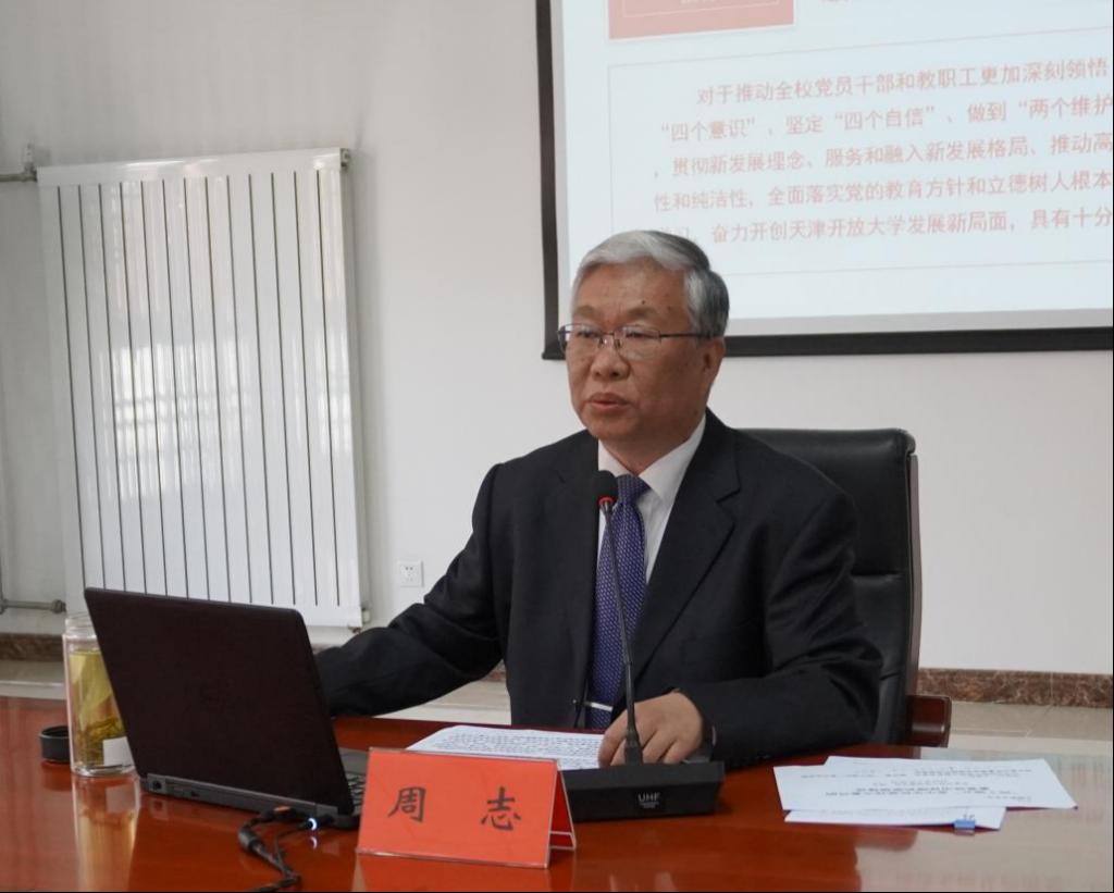 周志書記指出,開展學習貫徹習近平新時代中國特色社會主義思想主題教育,對于推動全校黨員干部和教職工更加深刻領悟“兩個確立”的決定性意義,更加自覺增強“四個意識”、堅定“四個自信”、做到“兩個維護”,弘揚偉大建黨精神,牢記“三個務必”,貫徹新發展理念、服務和融入新發展格局、推動高質量發展,始終與人民同心,保持黨的先進性和純潔性,全面落實黨的教育方針和立德樹人根本任務,更好地服務經濟社會發展和全民終身學習,奮力開創天津開放大學發展新局面,具有十分重大的意義。