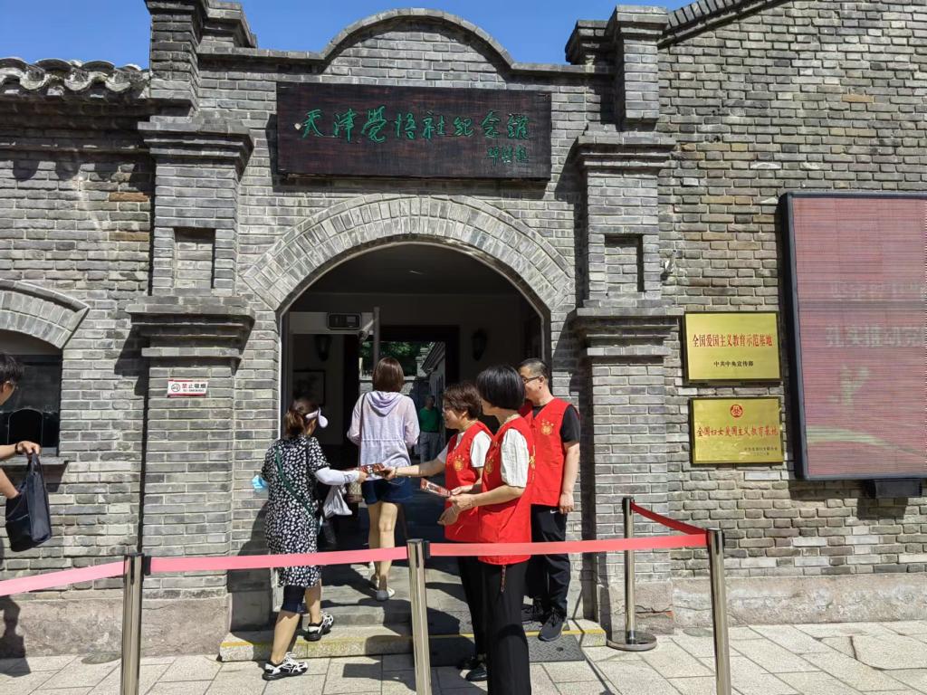 當天恰逢覺悟社舉行“迎七一”主題展覽,支部黨員現場開展志愿服務活動,協助做好展覽前準備工作,并向參觀群眾發放宣傳單。