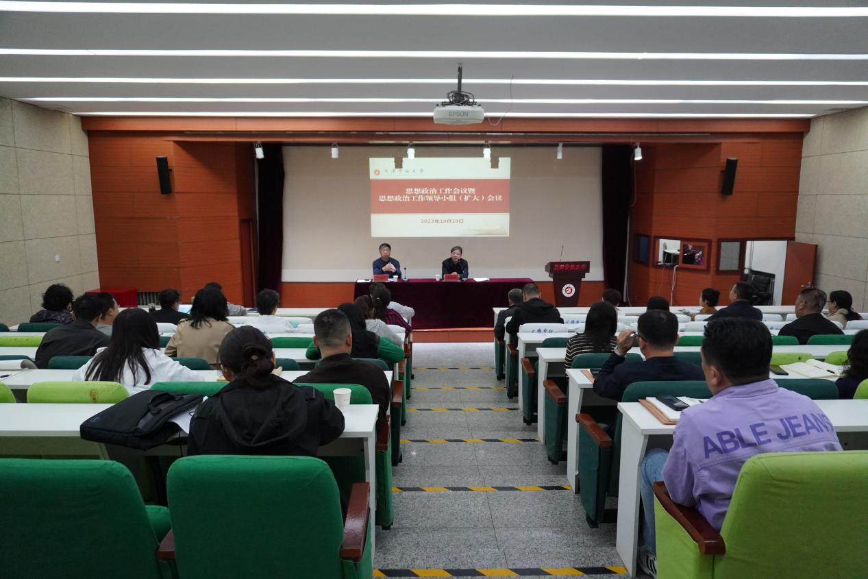 10月18日,我校在迎水道校區多功能會議室召開思想政治工作會議暨思想政治工作領導小組(擴大)會議。黨委副書記、校長張宗旺出席會議并講話,處級干部、基層黨組織書記、專職思政課教師和各辦學單位專職輔導員近50人參會,黨委副書記王剛清主持會議。