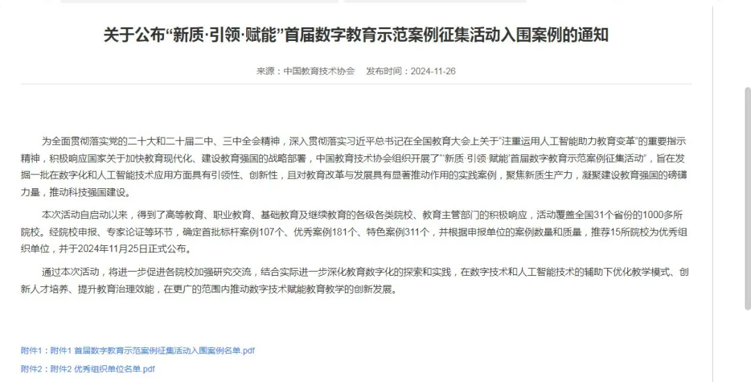 據悉,此次活動覆蓋全國31個省份的1000多所院校,經院校申報、專家論證等環節,在高等教育、職業教育、基礎教育、繼續教育四類中,共確定首批標桿案例107個、優秀案例181個、特色案例311個。