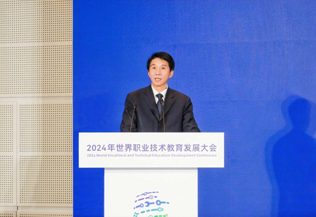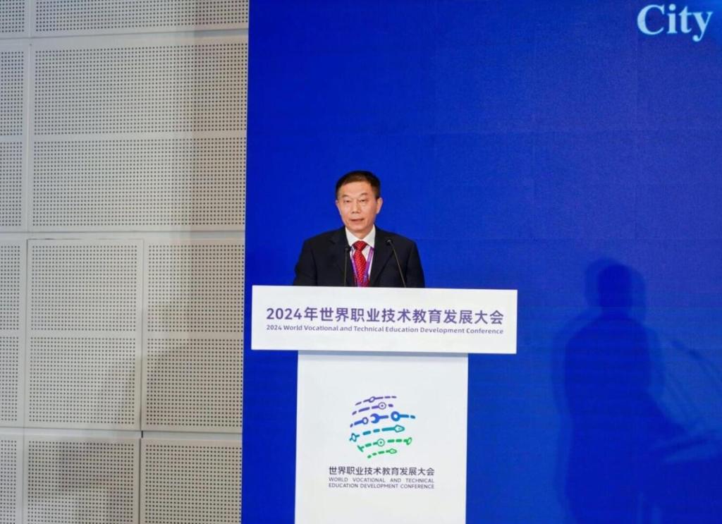 天子津渡,智者云集。11月21日,2024世界職業技術教育發展大會開幕,“職業教育與終身學習融合發展”平行會議同期召開。來自全球11個國家和地區的政府官員、國際組織代表、教育界專家學者,以及來自7所中國職業院校的書記、校長,共計200余人參會。會議分致辭和研討兩個環節,分別由國家開放大學黨委書記、校長王啟明,黨委委員、副校長李松主持。我校校長杜長有受邀作“職繼協同推動產教城融合發展的天津實踐”演講。